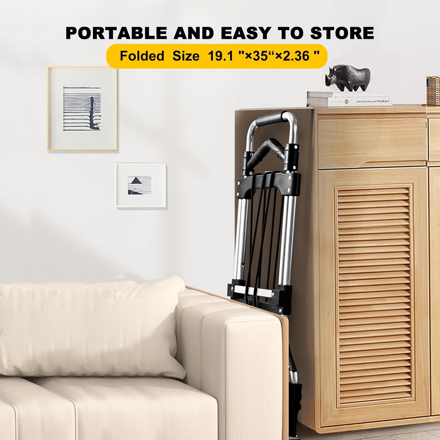 - 💎【Foldable and Collapsible Design】 Foldable design allows for easy storage in your car or garage without taking up too much space. When unfolded, the dolly cart reaches a height of 43.7’’, providing comfortable use for most people