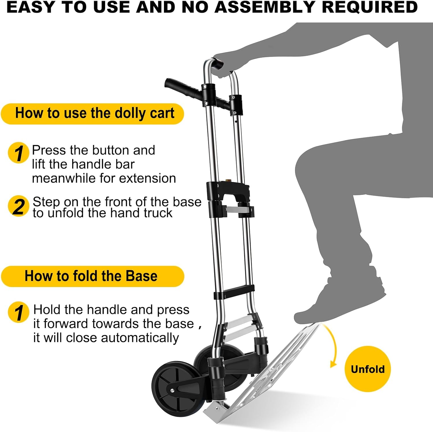 330 LB Capacity Folding Hand Truck Dolly Cart, Portable Aluminum Dolly Cart with Telescoping Handle and Rubber Wheels for Moving,Shopping,Travel,Office Use.